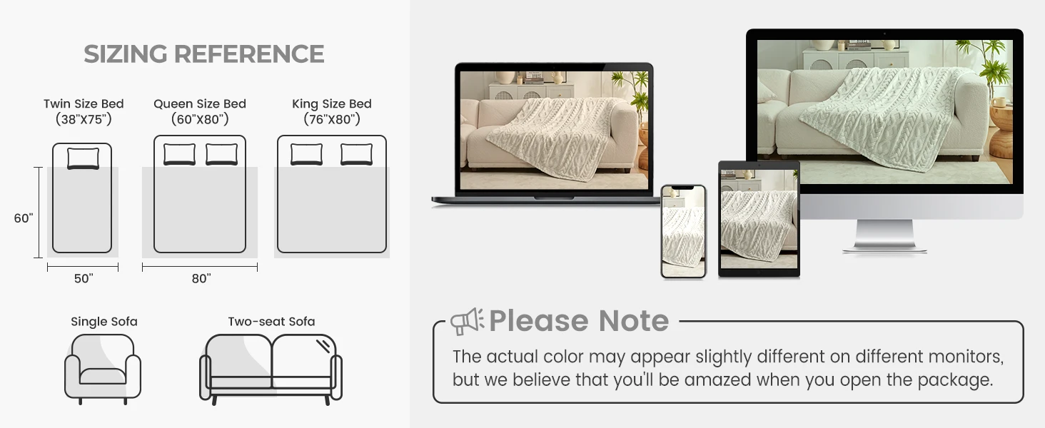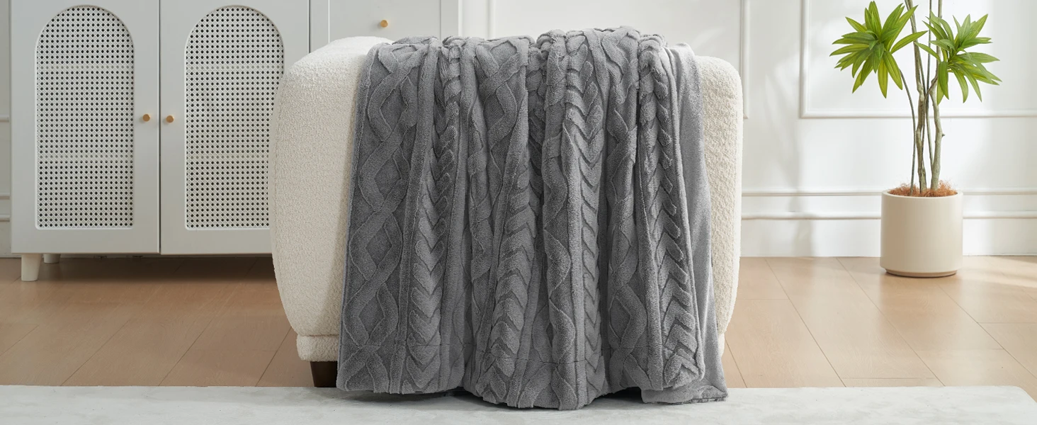 Stylish and Versatile: With jacquard technique and three-dimensional rhombic cable knit design, this throw blanket add a touch of elegance to your home decor with our versatile faux fur blanket, suitable for use in the living room, bedroom, or as a decorative throw.
