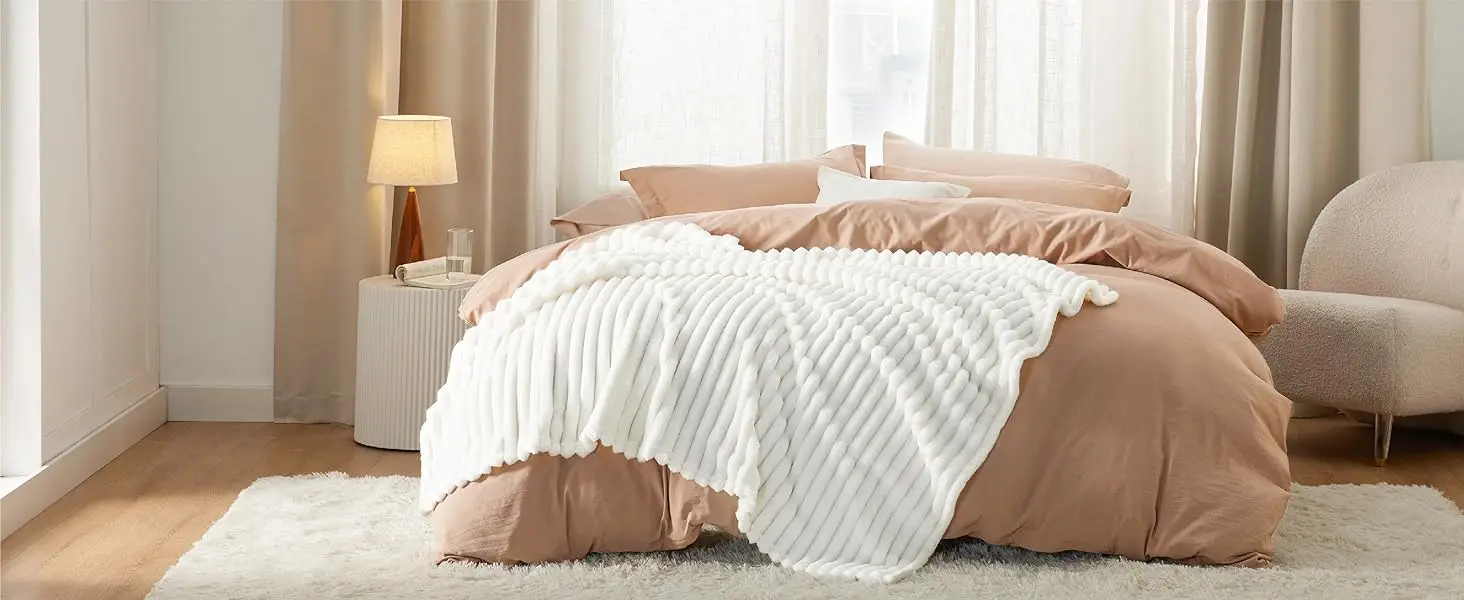 Exquisite Textures: This fuzzy blanket features a classic stripe pattern that creates an underlying unity to coordinate with your room's decor.