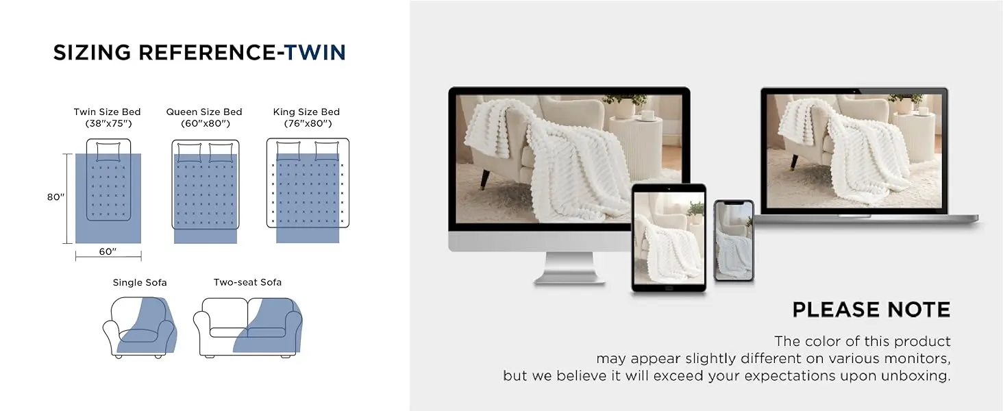 Versatile: This soft blanket provides the utmost coziness wherever you are-snuggling up in bed, binge watching on the couch, or anywhere in between.