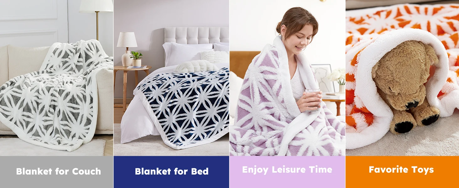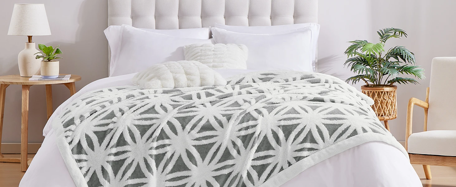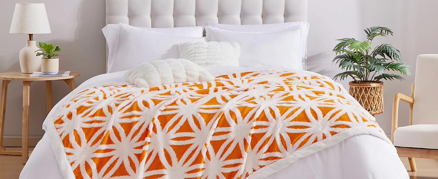 [Luxruy 3D Pattern]: Featuring a 3D tufted coral flower pattern, these jacquard microfiber plush blankets are more sutiable for decorating our home and creating romantic and comfortable atmosphere.
