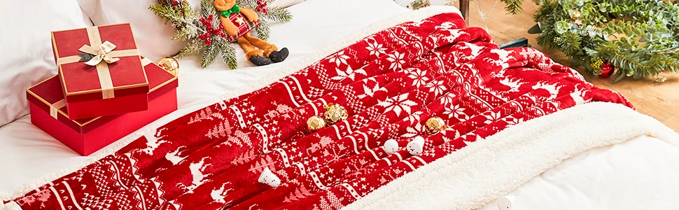 [Ultra-soft Fabric]: This christmas sherpa blanket is made up of two fabrics, the top layer is flannel and the bottom layer is Sherpa. Soft to the touch and comfortable, the cozy blanket will provide you with constant warmth