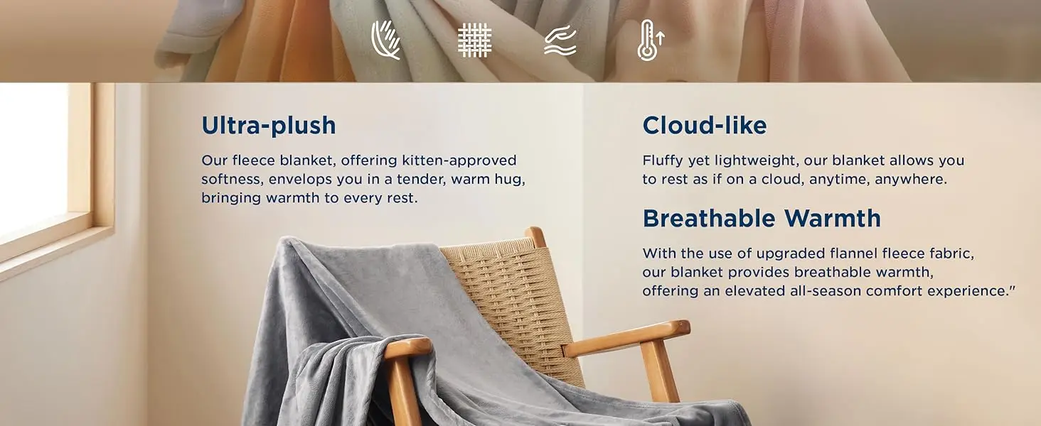 Thicker & Softer: We've upgraded our classic flannel fleece blanket to be softer and warmer than ever, now featuring enhanced premium microfiber. Perfect by itself or as an extra sheet on cold nights, its fluffy and ultra-cozy softness offers the utmost comfort all year round.